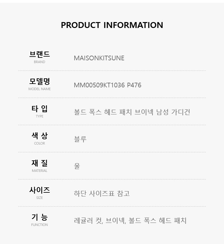 메종키츠네 가디건 MM00509KT1036 P476 볼드 폭스 헤드 패치 남성가디건 당일발송