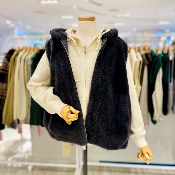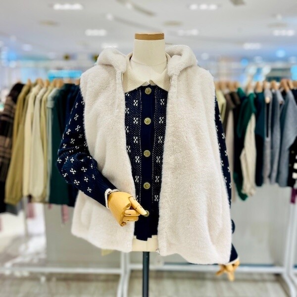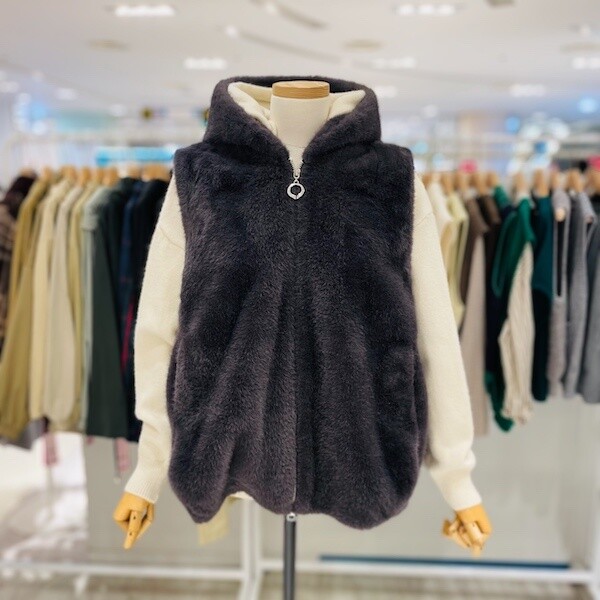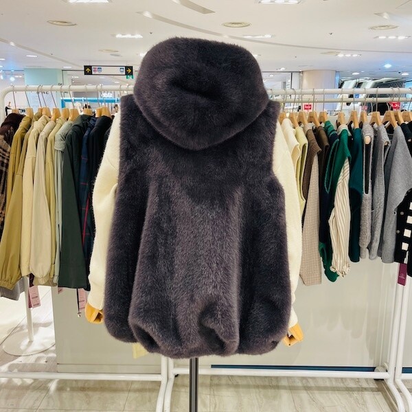 A24JK4409_밑단 벌룬 후드 무스탕 조끼