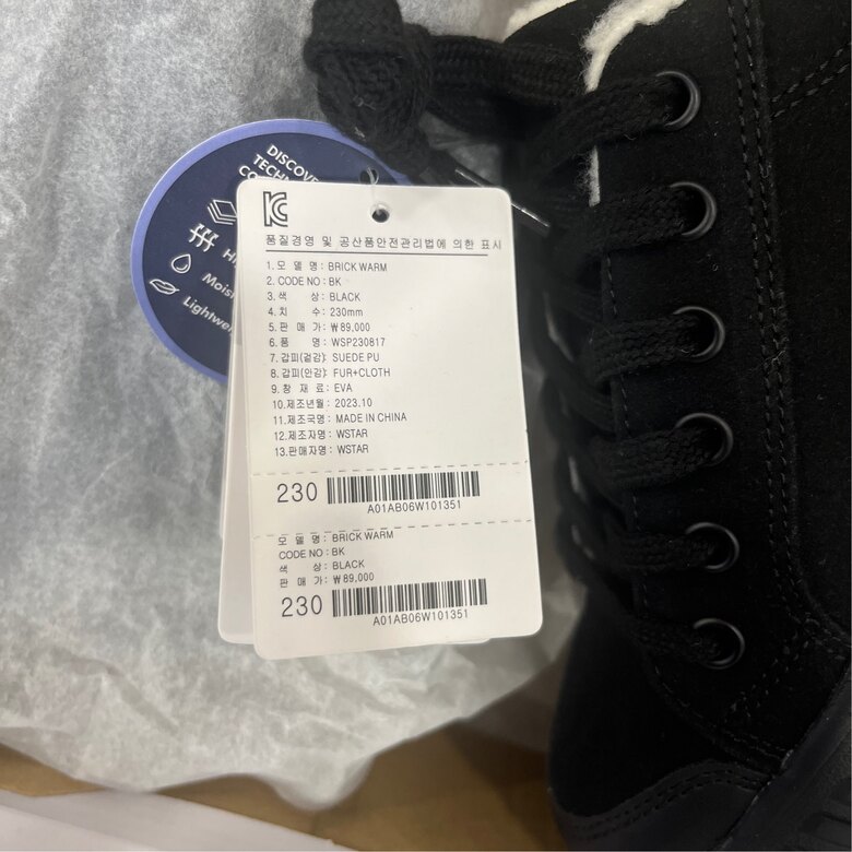 겉감은 합성 스웨이드 소재|*| 안감은 FUR소재를 사용하여 이중으로 보온성을 향상시켰으며 가벼운 무게감으로 따뜻하고 편안합니다