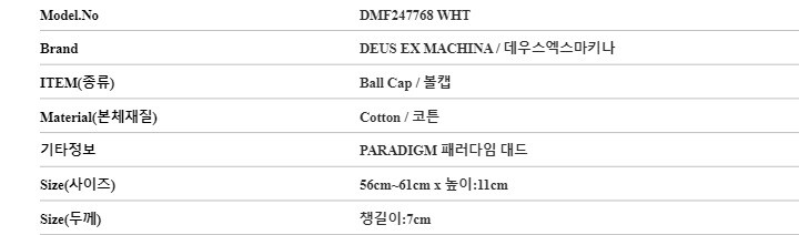 데우스엑스마키나 모자 DMF247768 WHT PARADIGM 패러다임 대드 볼캡 캡모자 당일발송