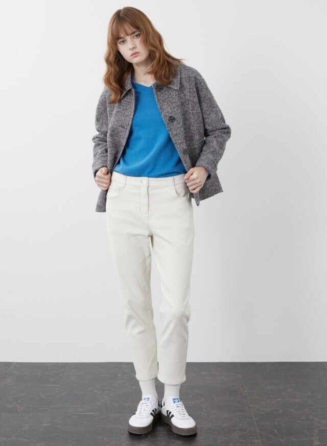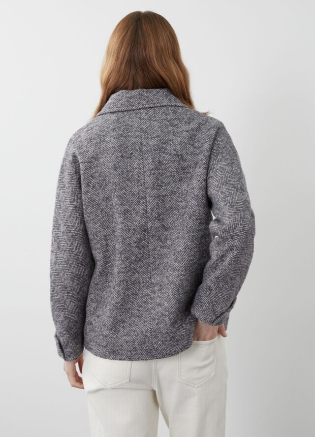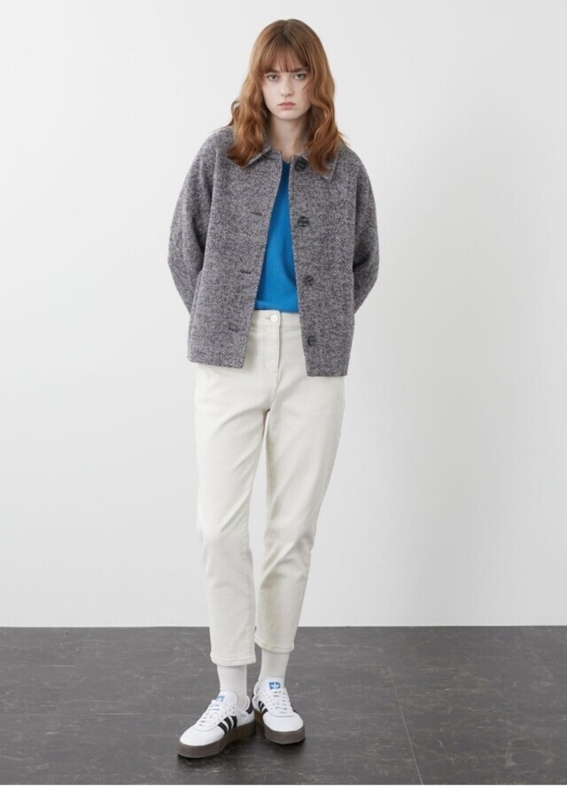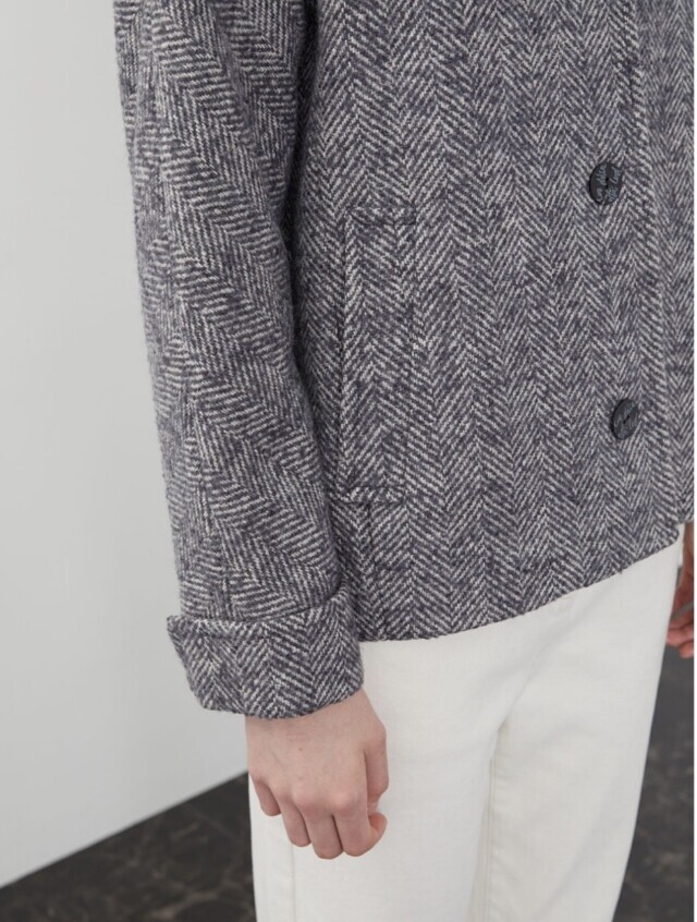 잔잔한 헤닝본 소재의 스탠카라 자켓입니다