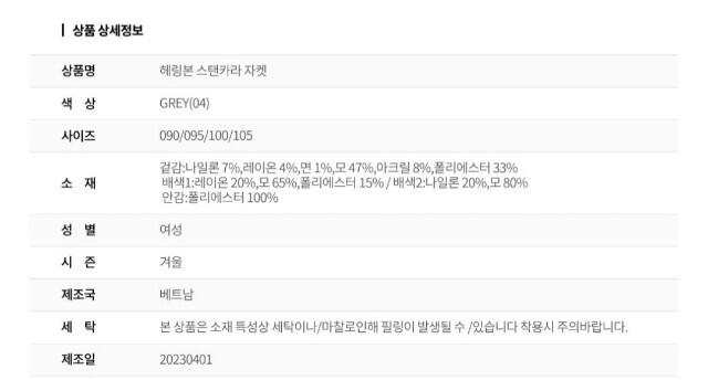 | 6. 세탁방법 및 취급시 주의사항 | 상품상세참조 |
