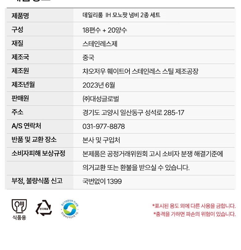 10. 수입 기구/용기 | 상세페이지 참조 |