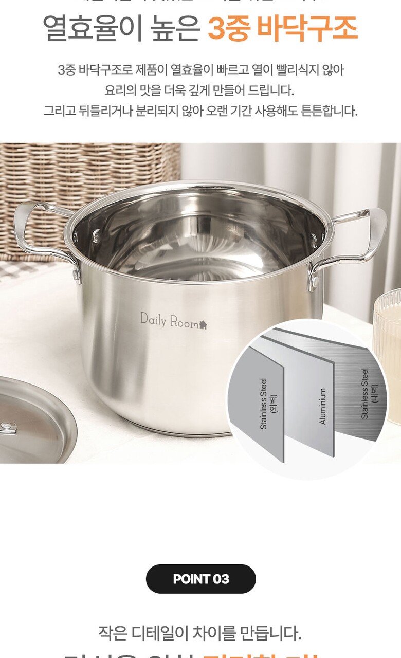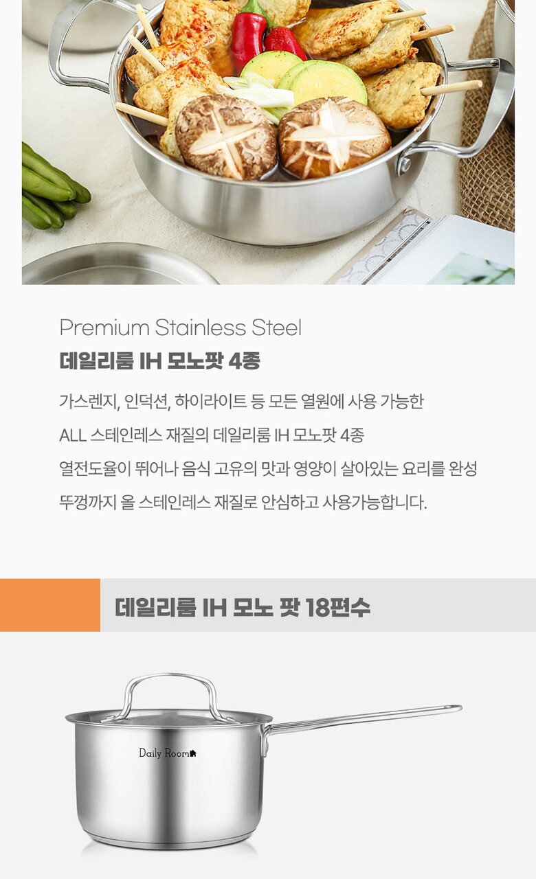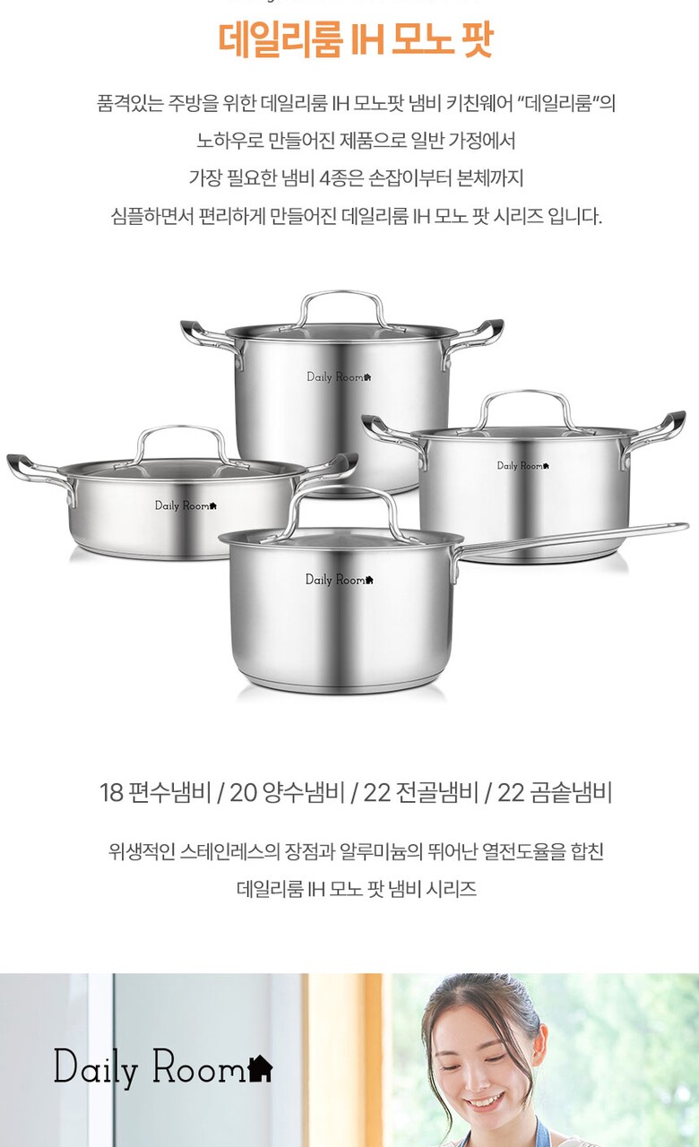 데일리룸 IH 모노팟 냄비 2종 세트(18편수+20양수)
