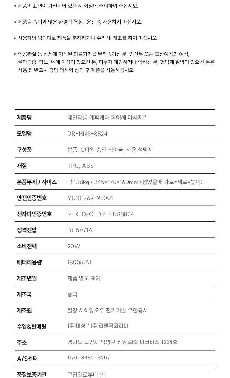 • 표시/광고와 상이, 제품 하자의 경우 수령 후 3개월 이내, 또는 그 사실을 안 날로부터 30일 이내 교환/반품 가능합니다.