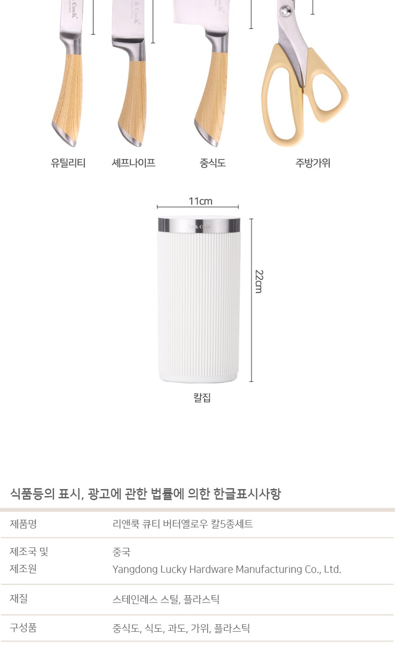 리앤쿡 큐티 버터옐로우 칼5종세트