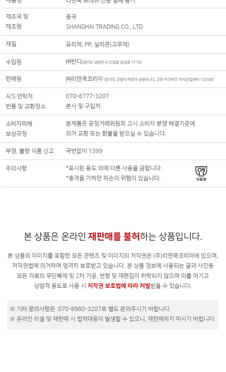 10. 수입 기구/용기 | 상세페이지 참조 |
