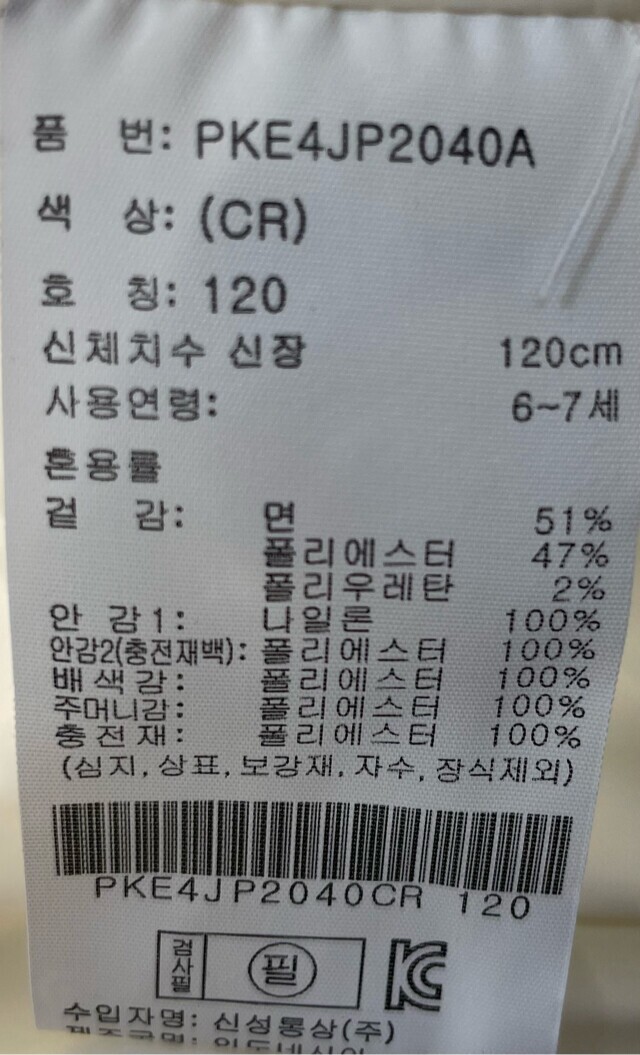 | 1. 제품 소재 (섬유의 조성 또는 혼용률을 백분율로 표시, 기능성인 경우 성적서 또는 허가서) | 상품상세참조 |