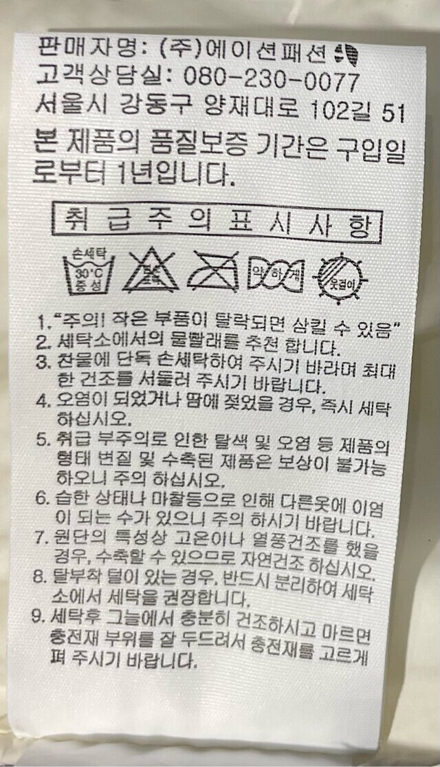 | 6. 세탁방법 및 취급시 주의사항 | 상품상세참조 |