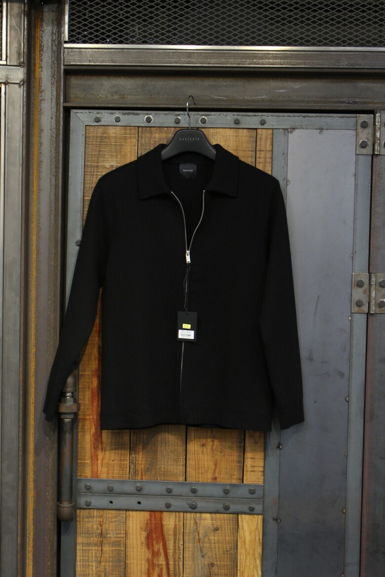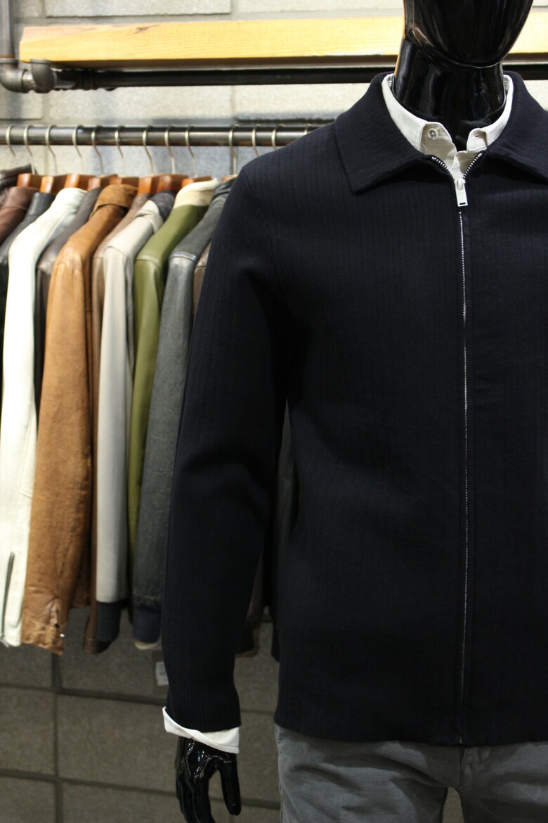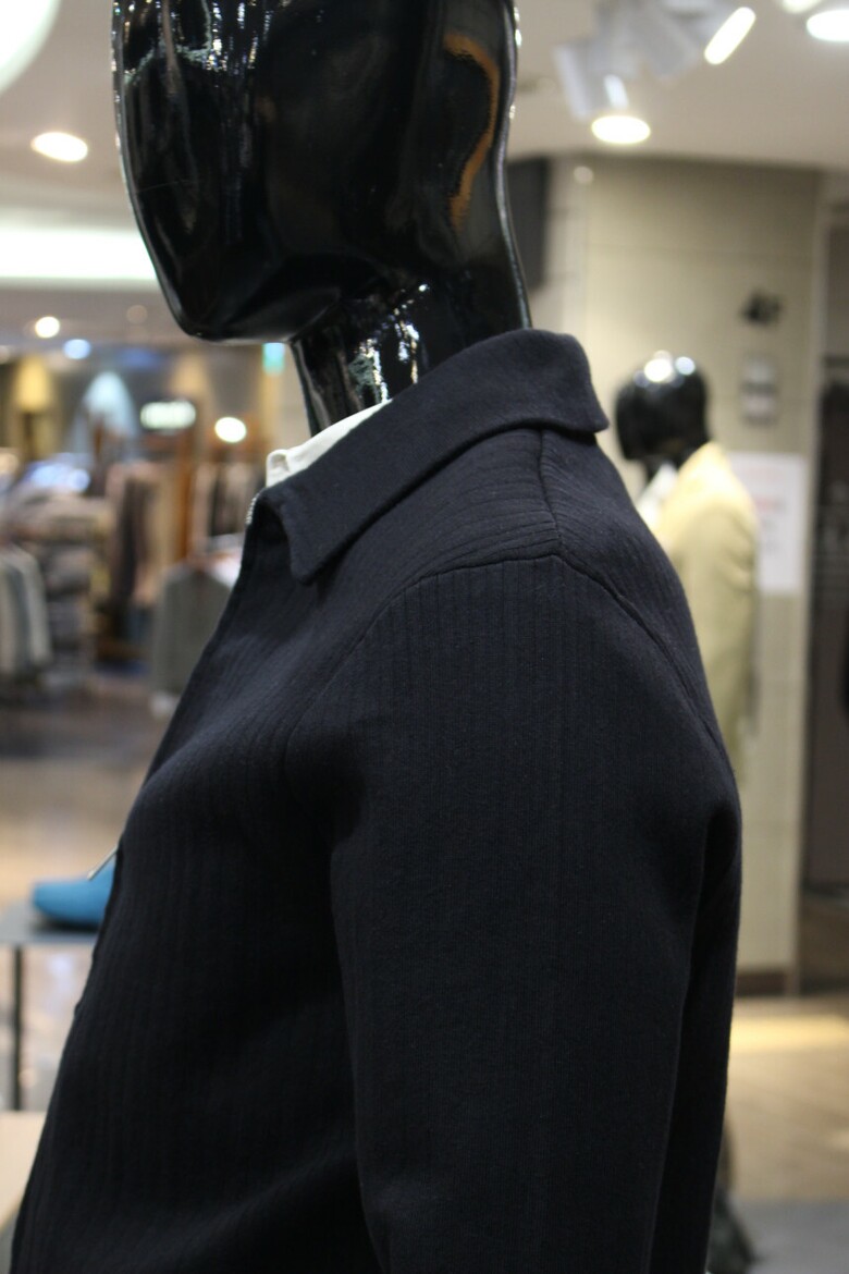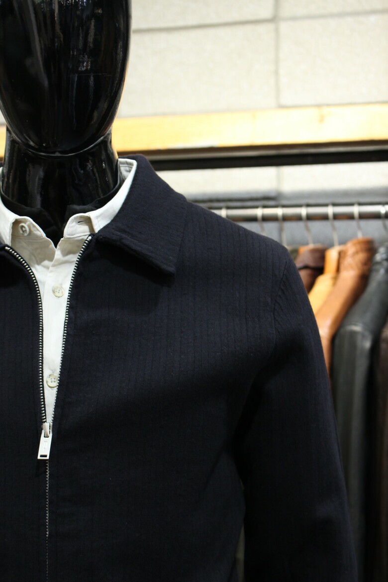 소매단에 반시보리가 있으며 밑단은 시보리없이 똑 떨어지는 라인으로 자켓스러운 느낌을 더해줍니다