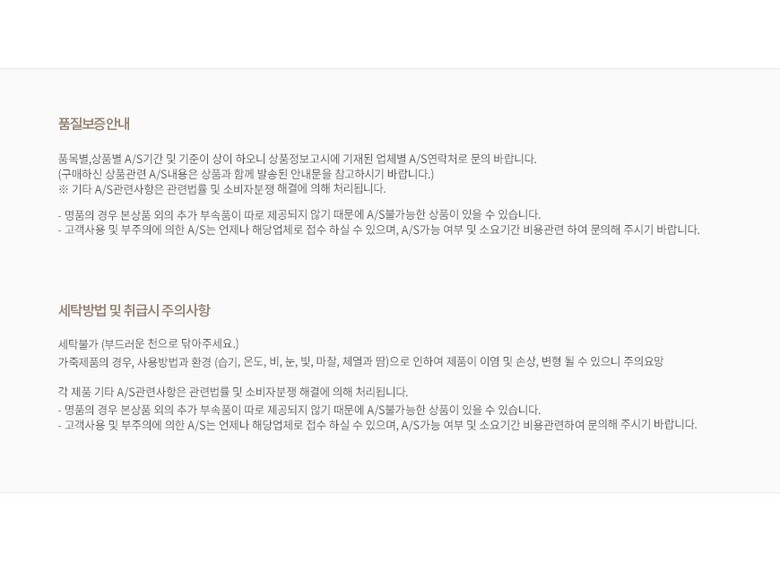 6. 취급시 주의사항 | 열이나 직사광선, 습기에 주의하고, 부드러운 소재를 사용하여 닦아주시기 바랍니다. |