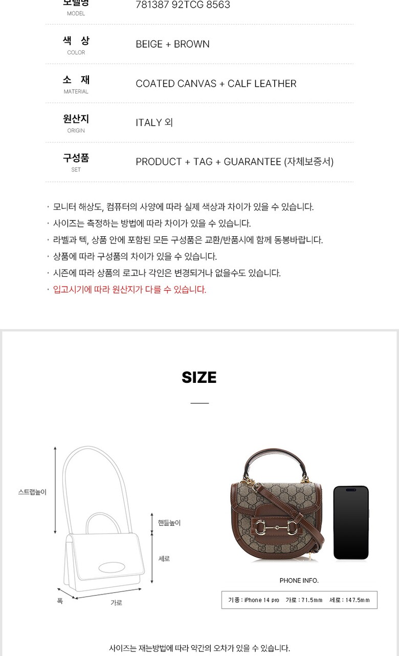 2. 소재 | 코팅 캔버스 + 소가죽 |