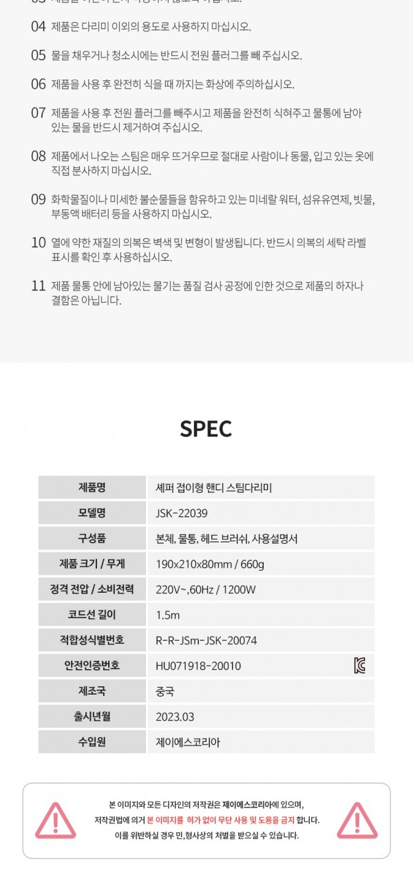 셰퍼 접이형 핸디 스팀다리미 JSK-22039