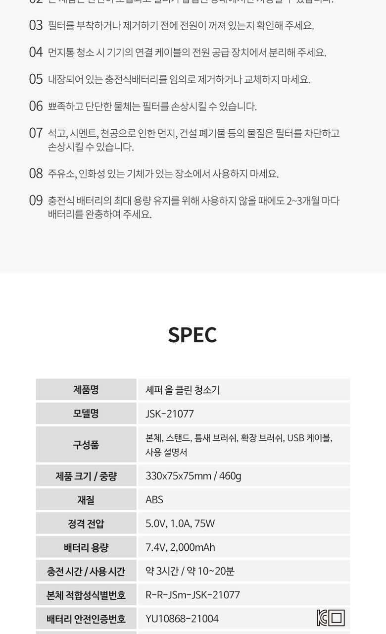 3. 전기용품 안전인증 필 유/무 | 유 |