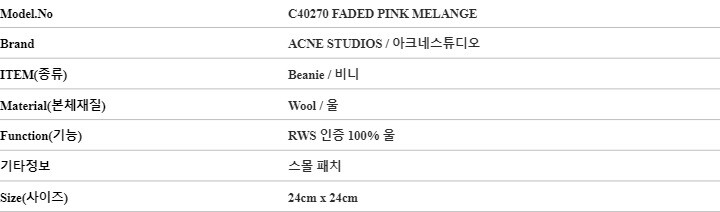 아크네스튜디오 비니 C40270 FADED PINK MELANGE 페이스 로고 스몰 패치 비니 당일발송