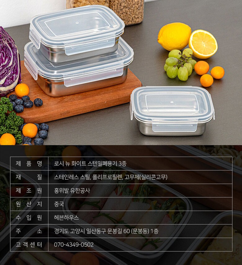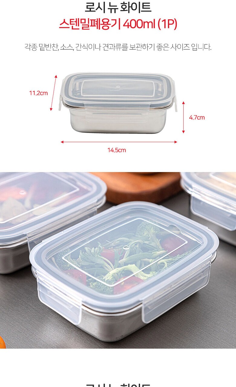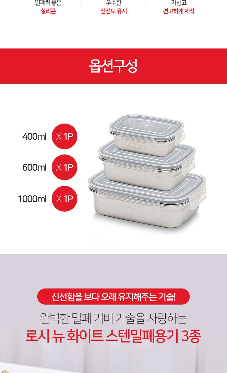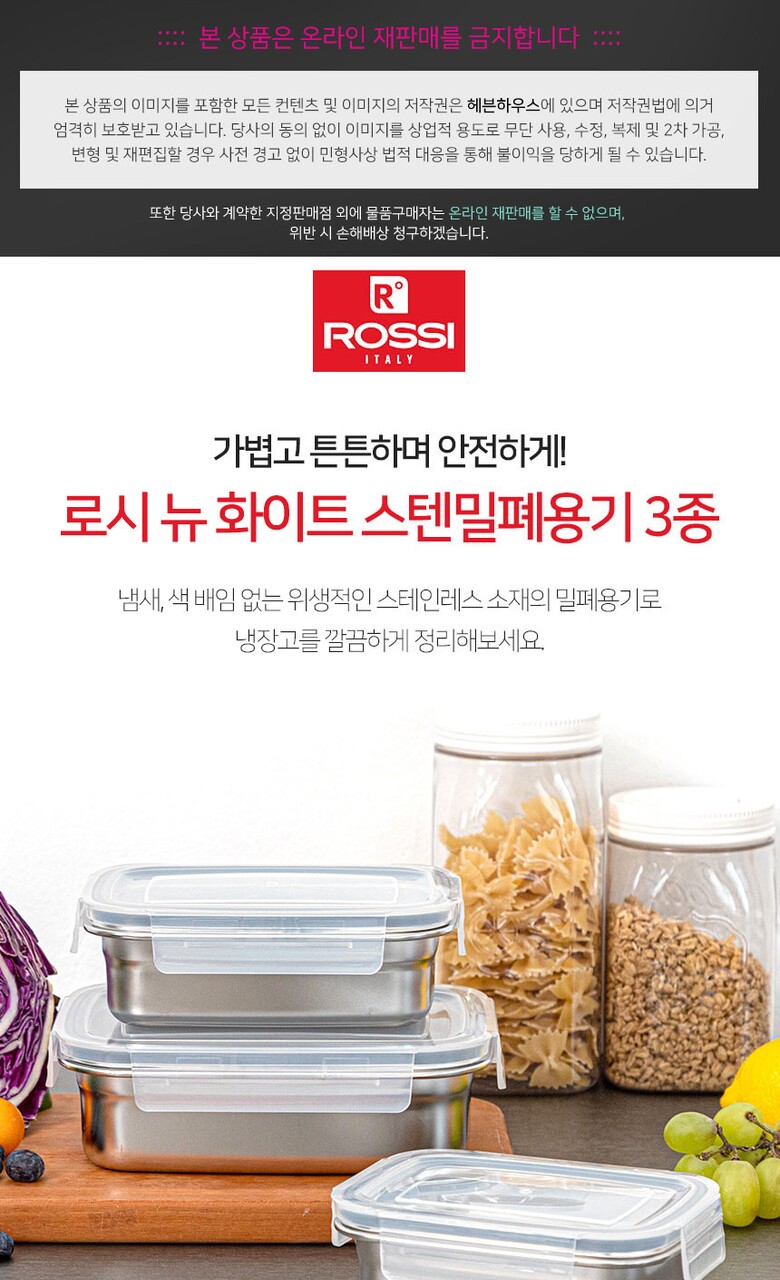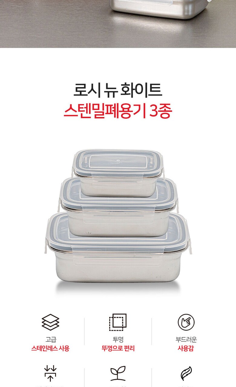 이태리 로시 더화이트 스텐밀폐용기3종