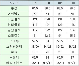 | 3. 치수 | 95,100,105,110 |