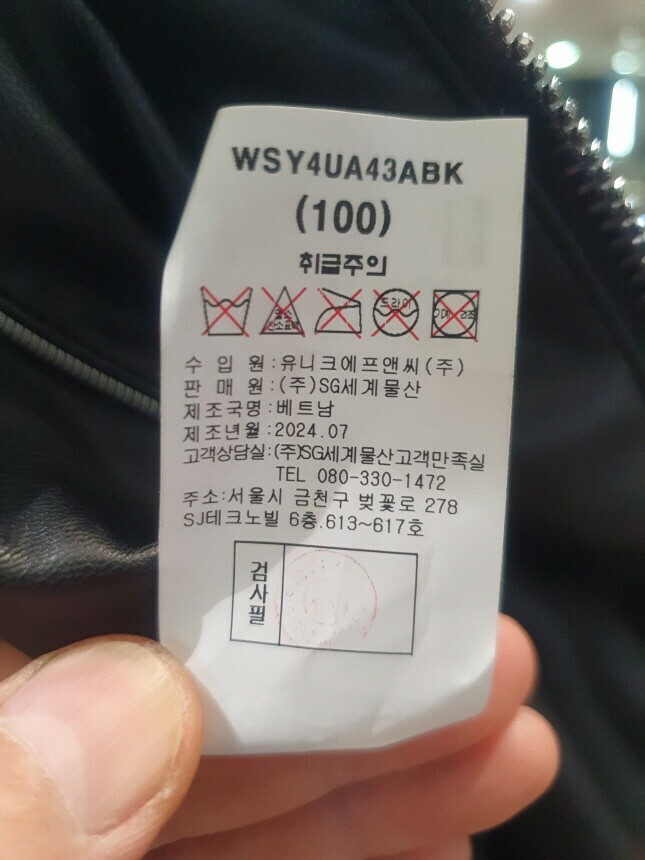 안감 : 폴리에스터 100%