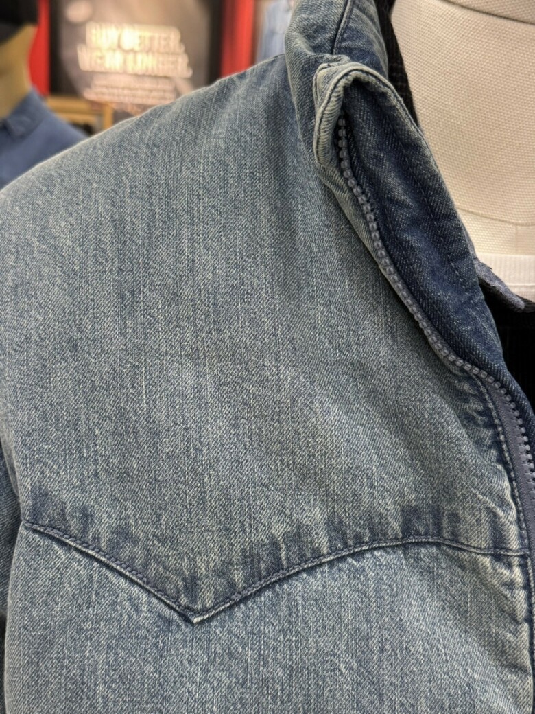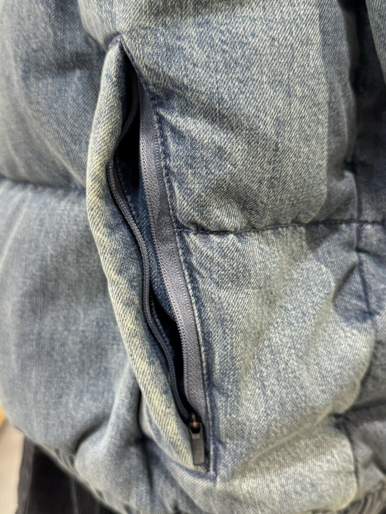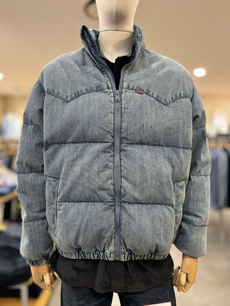 데님원단으로 제작된 남성 오리털 자켓입니다.