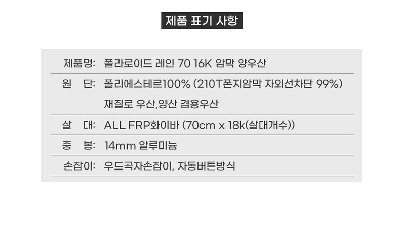 폴라로이드 레인 70 16K 암막 장우산 (선물용 고급 파우치 증정)