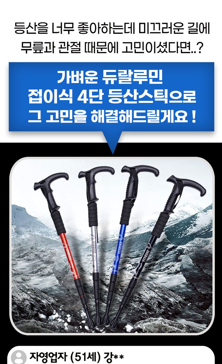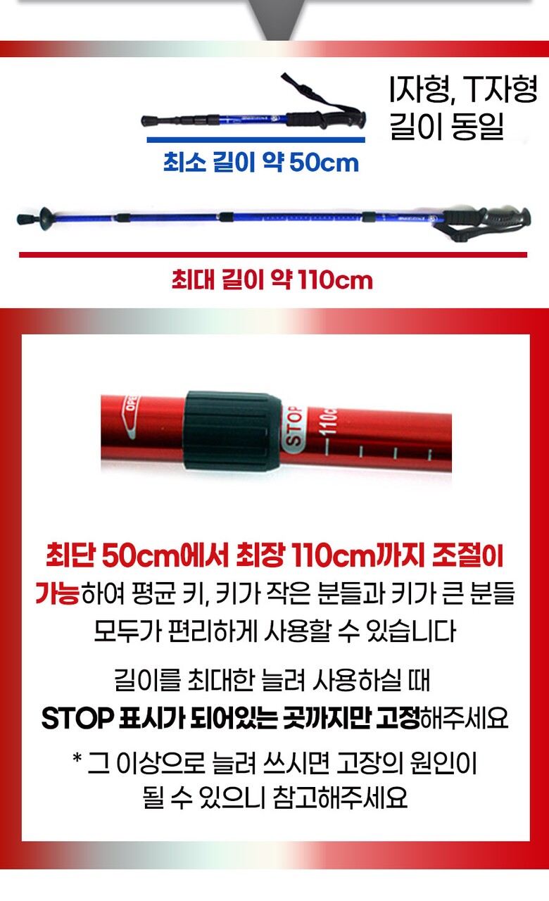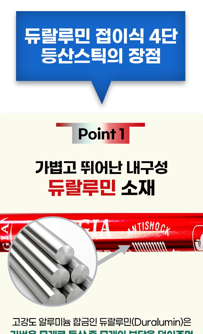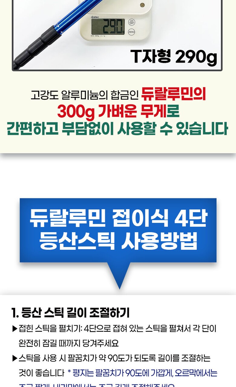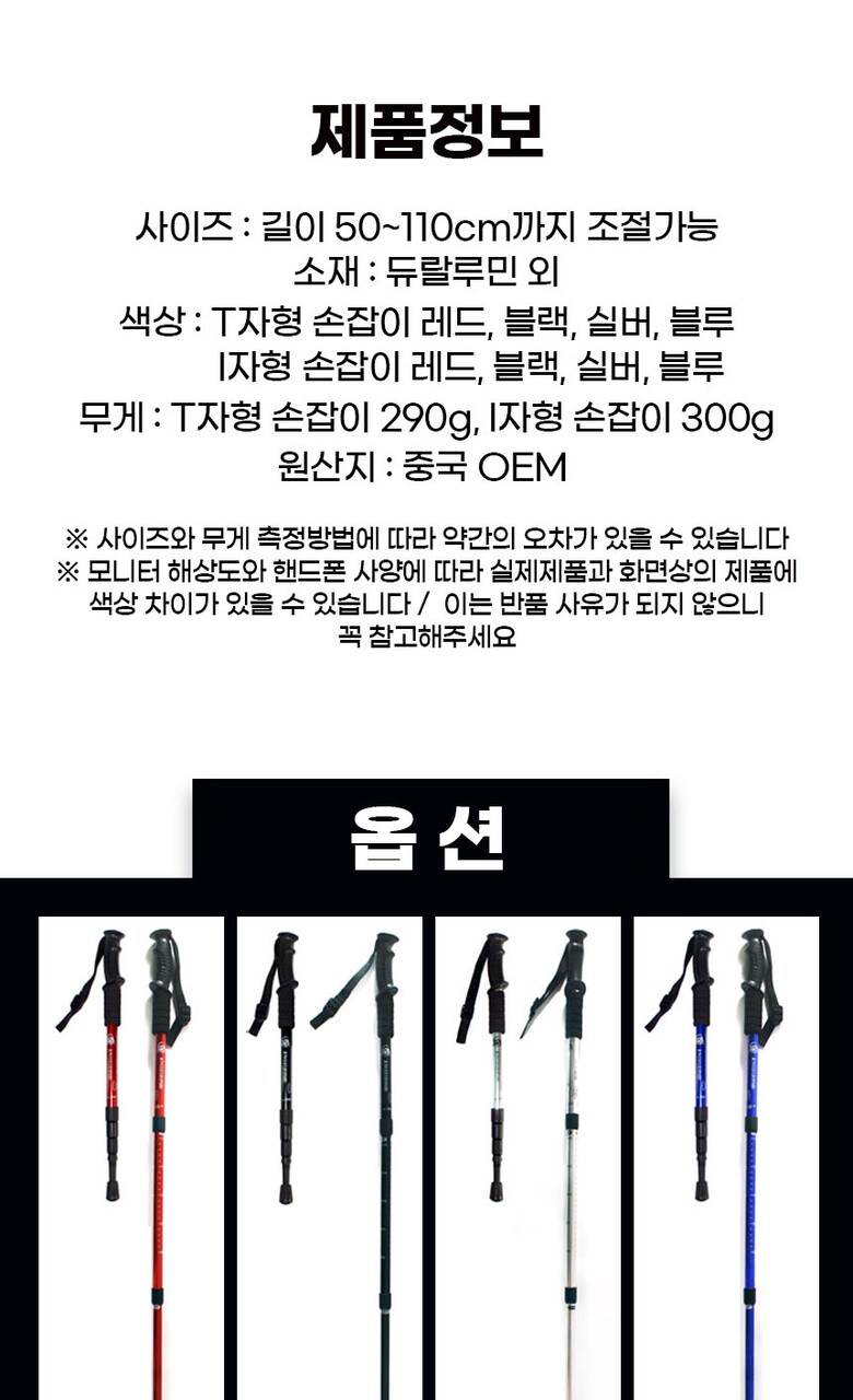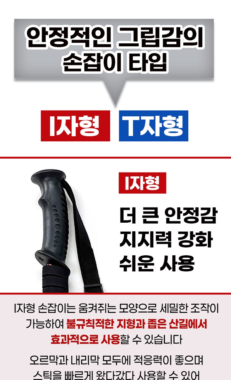1. 품명 및 모델명 | 등산스틱 4단스틱 접이식 경량 듀랄루민 I형 T형 등산지팡이 |