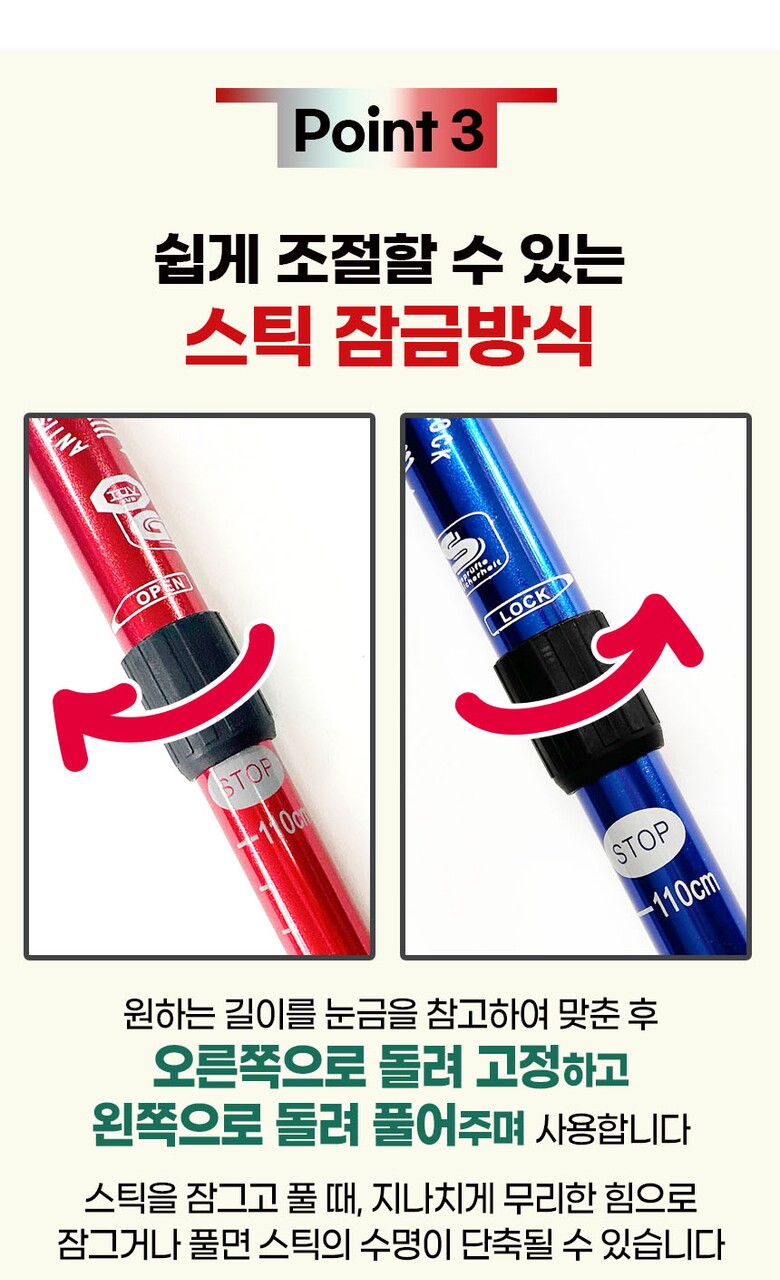 2. 크기, 중량 | 길이 50-110cm까지 조절가능, 무게 약 300g |