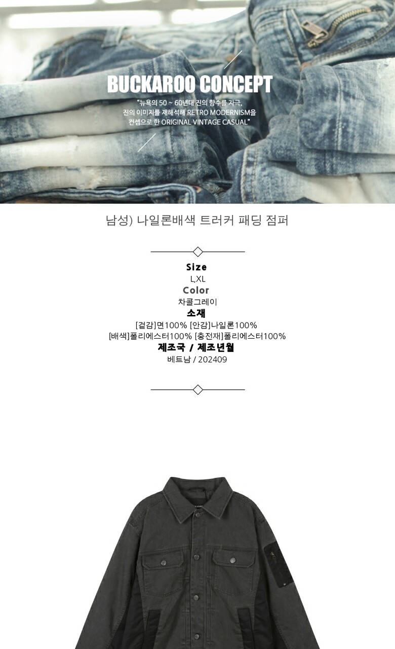 [버커루] 남성) 나일론배색 트러커 패딩 점퍼 (B241JP300P)