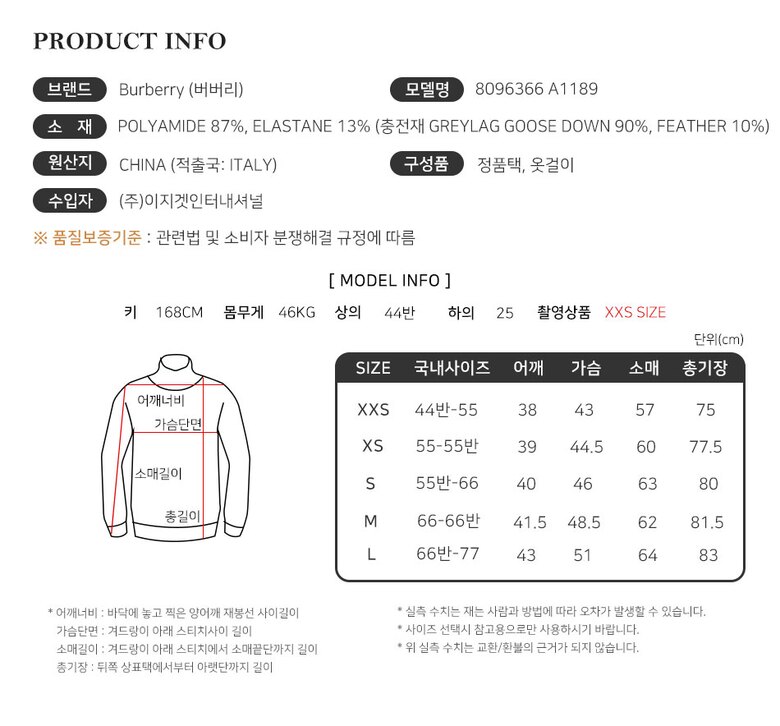 | 6. 세탁방법 및 취급시 주의사항 | 상품상세 참조 |