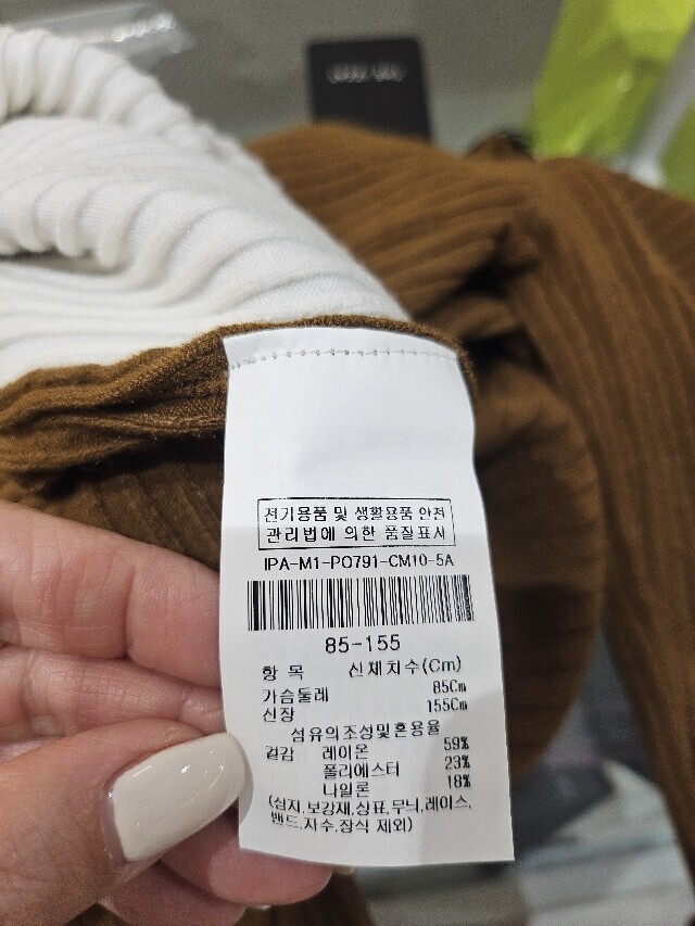 | 1. 제품 소재 (섬유의 조성 또는 혼용률을 백분율로 표시, 기능성인 경우 성적서 또는 허가서) | 레이온59%,폴리에스터 23%,나일론 18% |