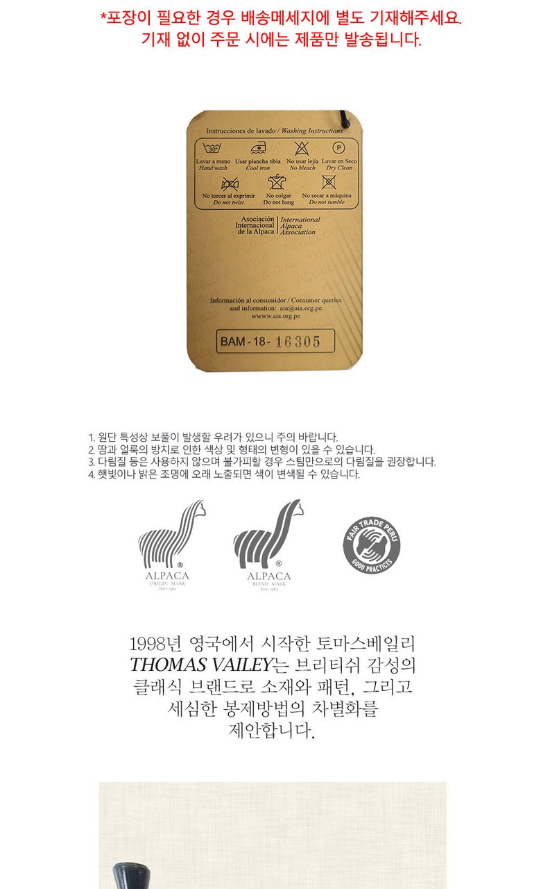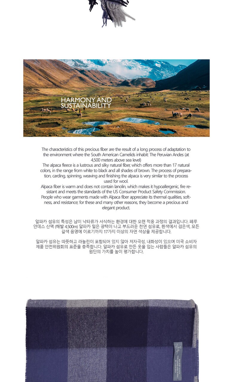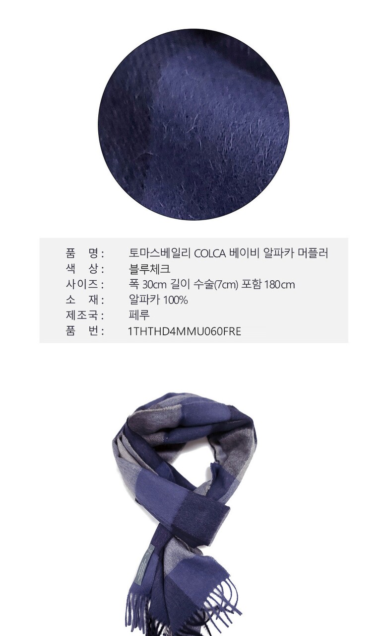 [THOMAS VAILEY] 베이비 알파카 100% 머플러 블루체크 MU060