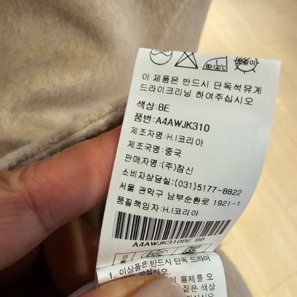 세탁방법 및 취급시 주의사항 : 드라이크리닝