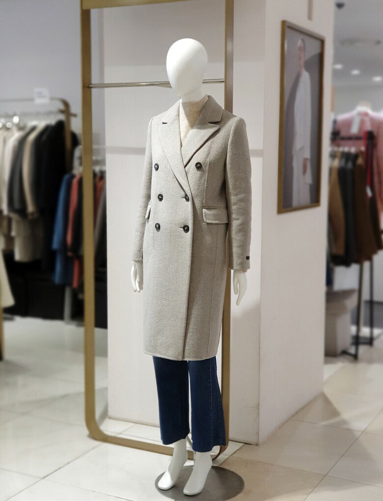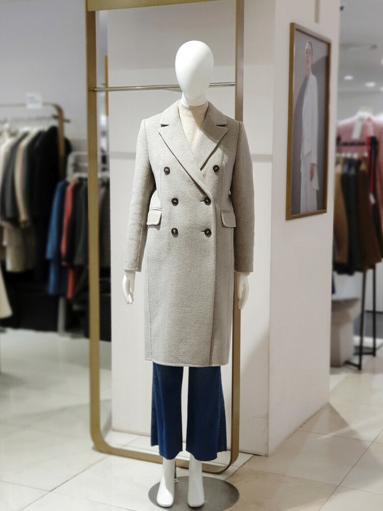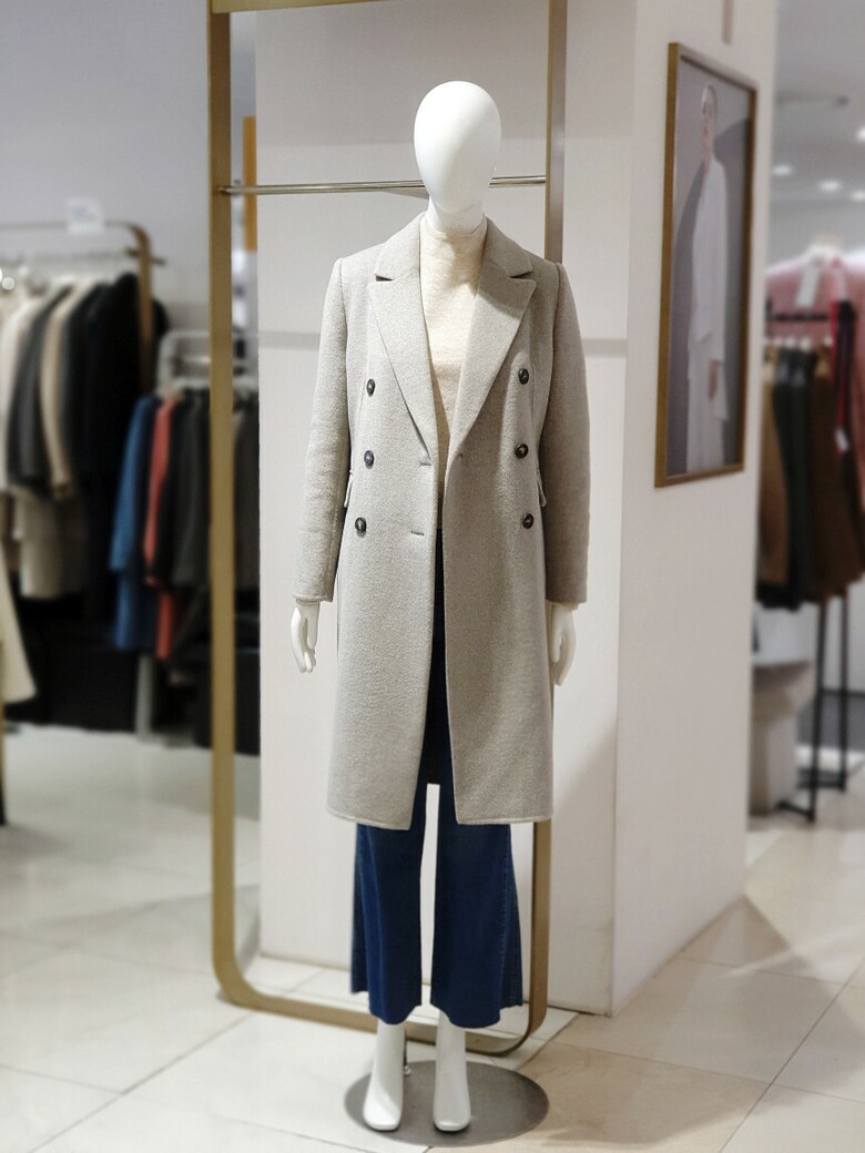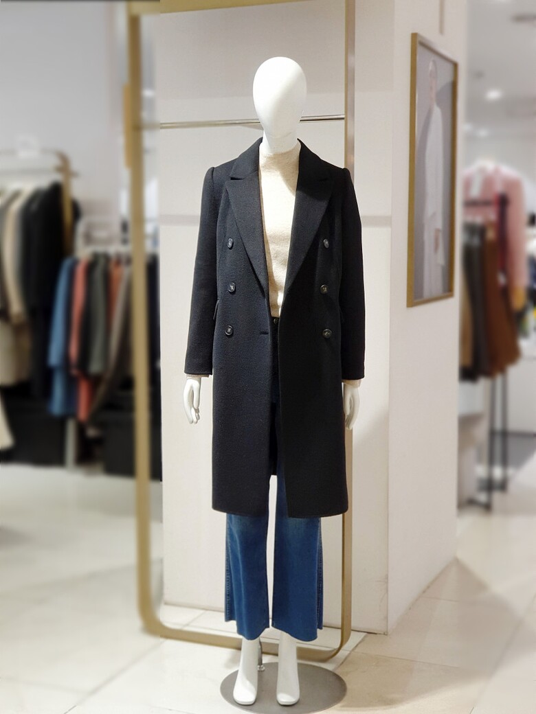 더블브레스트 디자인으로 클로징 실루엣이 멋스러우며