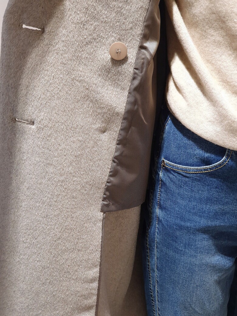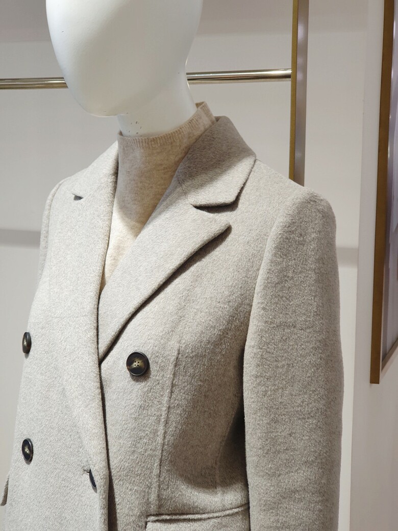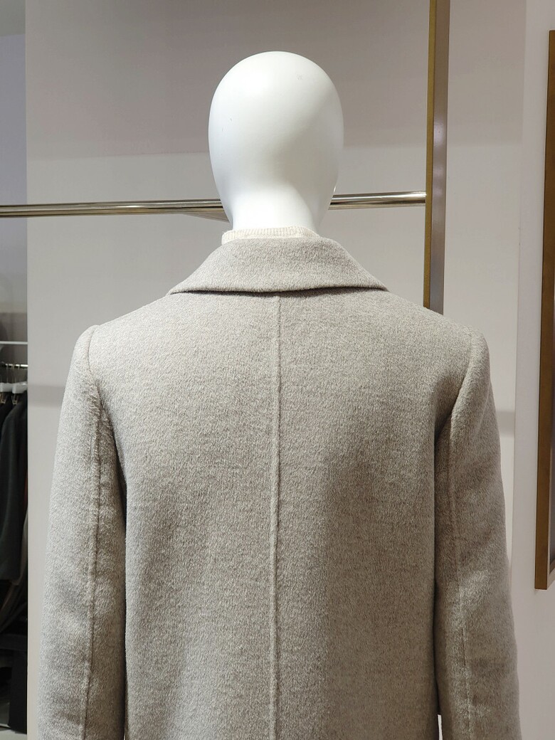 울 캐시미어 블렌드 소재의 핸드메이드 코트입니다.