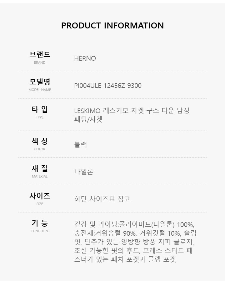 | 1. 제품 소재 (섬유의 조성 또는 혼용률을 백분율로 표시, 기능성인 경우 성적서 또는 허가서) | 상세페이지 참조 |