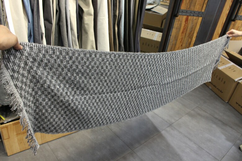 비교적 폭이 좁고 길이가 긴 (180x40)롱머플러로 촉감은 러프한편이며 빈티지하고 보온성이 좋은편입니다