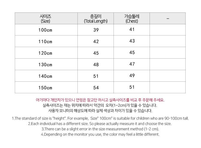사이즈 : 100,110,120,130,140,150