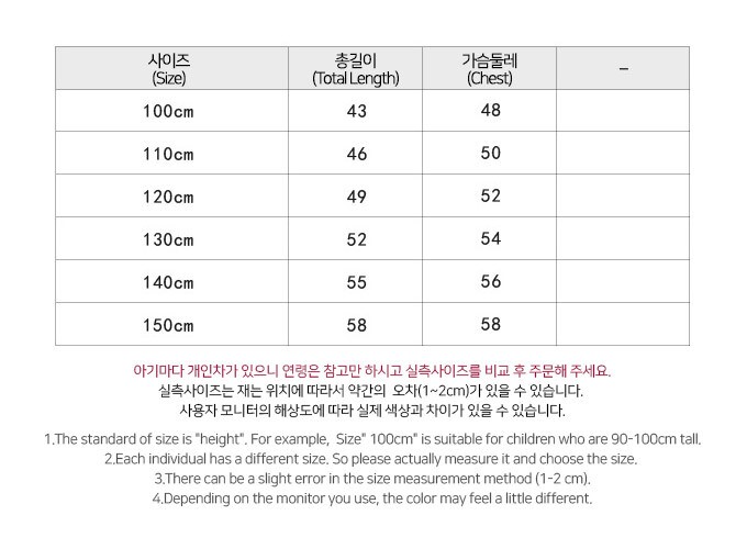 사이즈 : 100,110,120,130,140,150