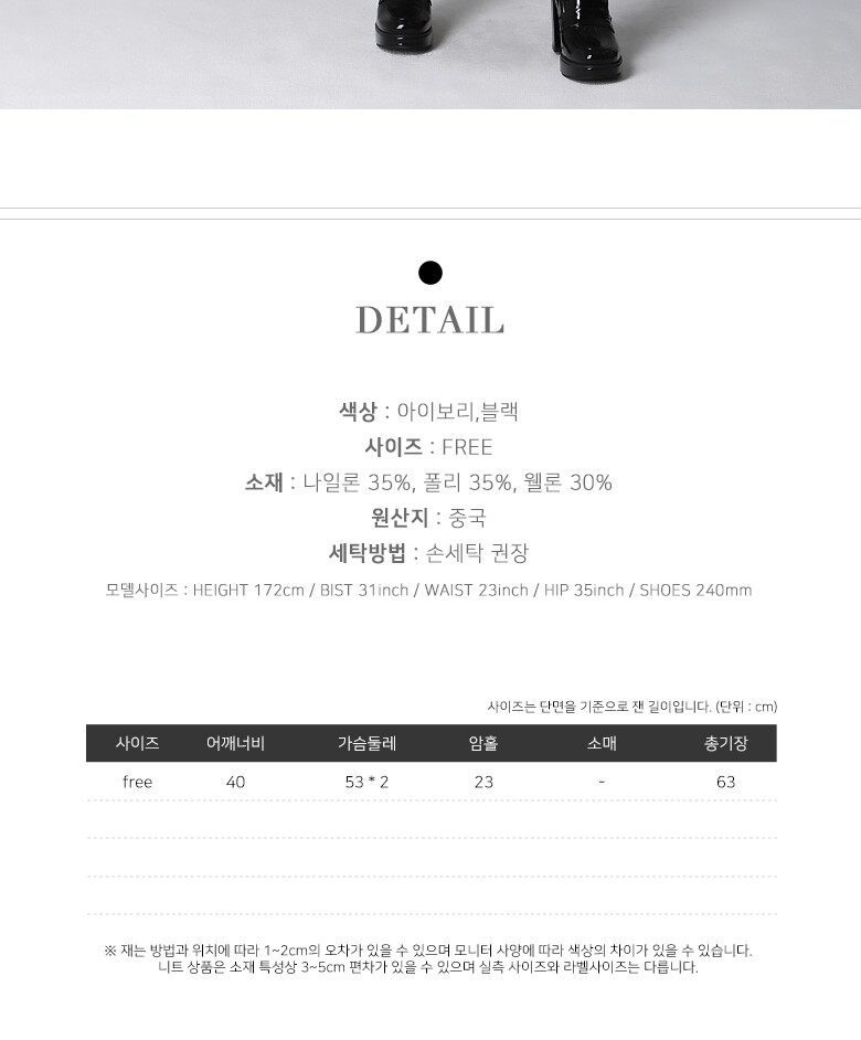 • 처음 배송된 상품상태와 다를 경우(세탁/착용 후 외출하신 경우) 반품이 불가합니다.