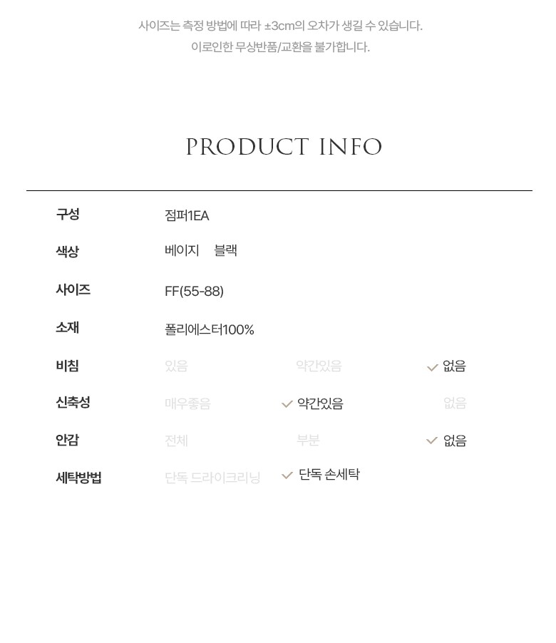 | 1. 제품 소재 (섬유의 조성 또는 혼용률을 백분율로 표시, 기능성인 경우 성적서 또는 허가서) | 폴리에스터100% |