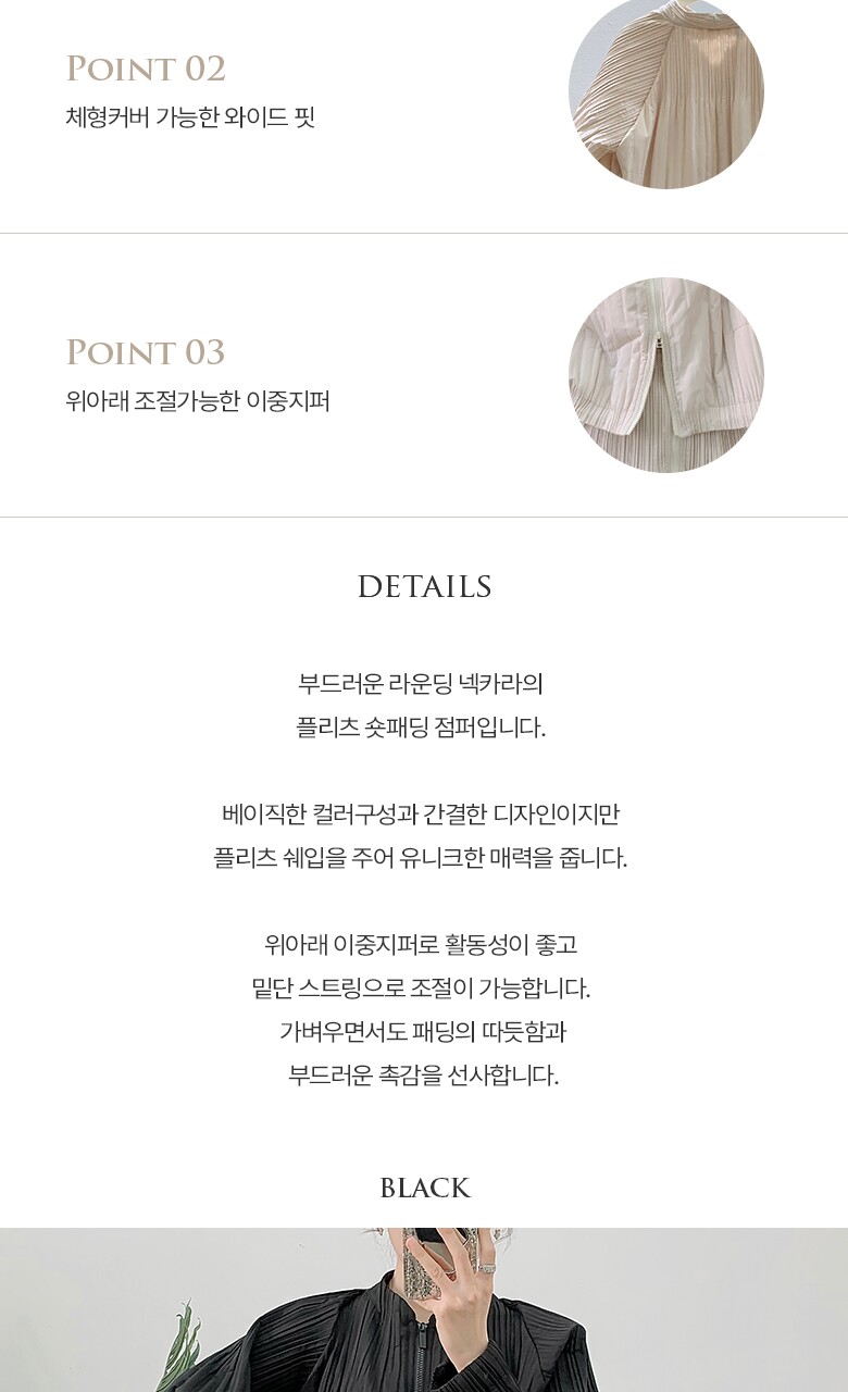 플라라 (88까지)플리츠패딩레글런집업점퍼
