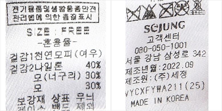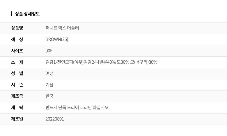 2. 소재 | 겉감1-천연모피(여우)겉감2-나일론40% 모30% 모(너구리)30% |