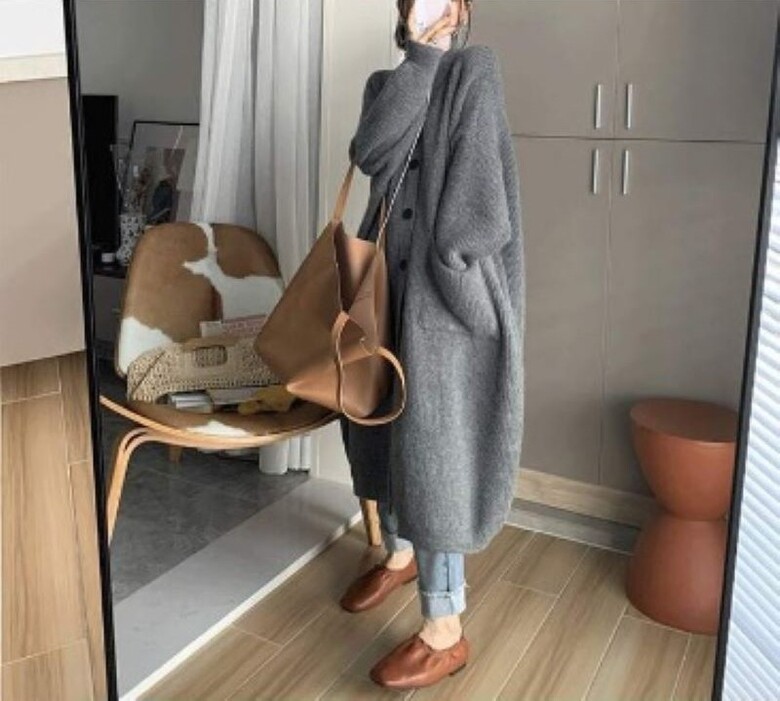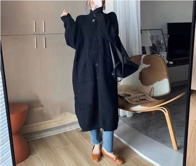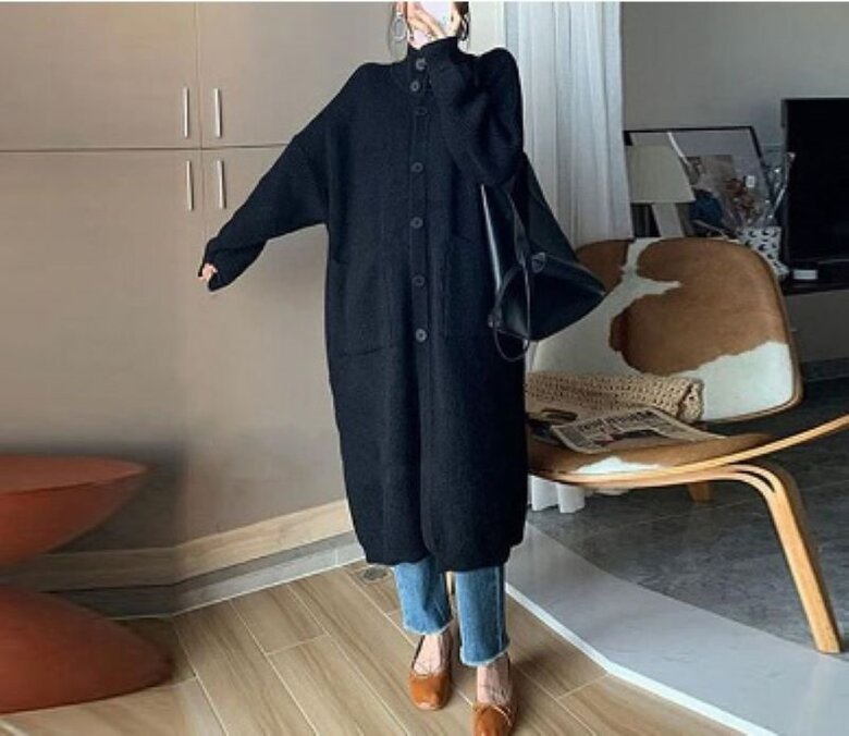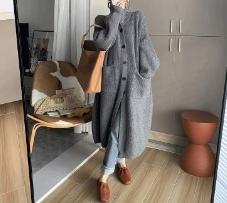 뮬레 벌룬 터틀넥 오버핏 니트 롱 가디건_241101_DH17