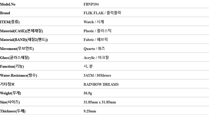 플릭플락 FBNP194 COLOR MY LIFE RAINBOW DREAMS 주니어 나토 시계
