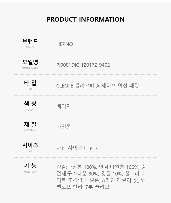 에르노 PI0001DIC 12017Z 9402 CLEOFE 클리오페 A 셰이프 구스 다운 여성 패딩
