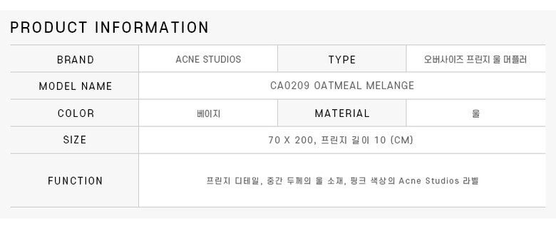 아크네스튜디오 CA0209 OATMEAL MELANGE 오버사이즈 울 프린지 머플러 목도리
