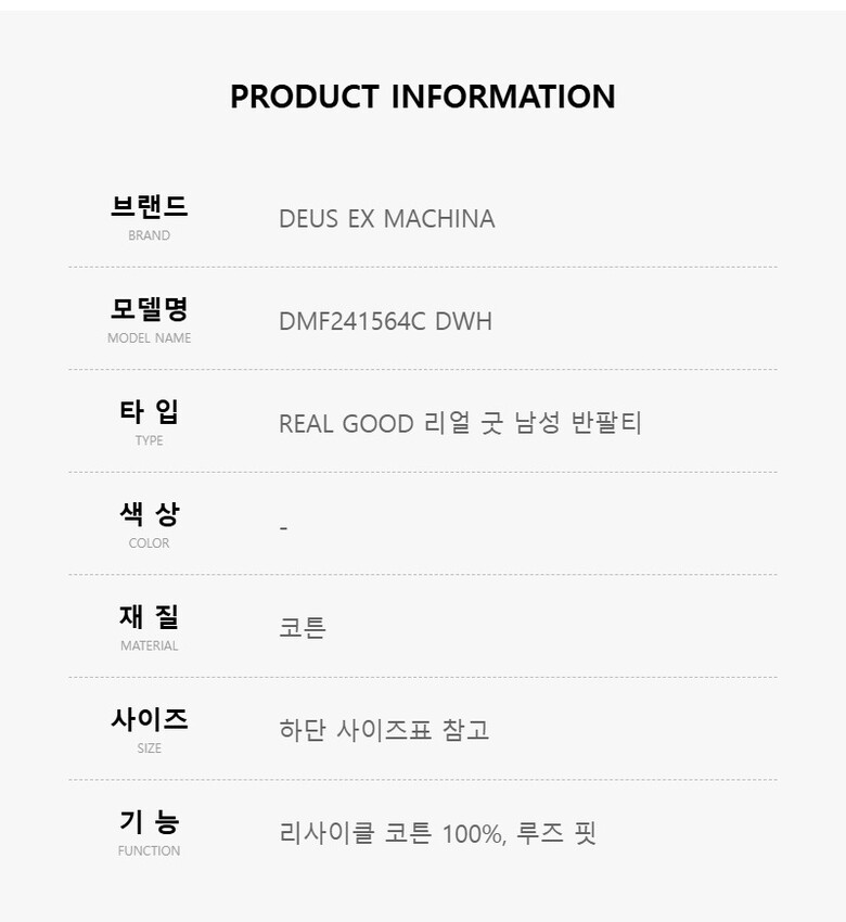데우스엑스마키나 DMF241564C DWH REAL GOOD 리얼 굿 남성 반팔티
