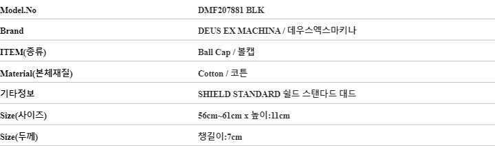 데우스엑스마키나 DMF207881 BLK SHIELD STANDARD 쉴드 스탠다드 대드 볼캡 모자