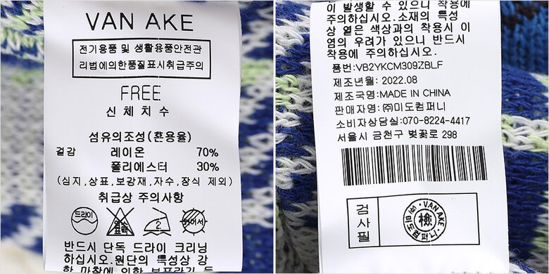 | 1. 제품 소재 (섬유의 조성 또는 혼용률을 백분율로 표시, 기능성인 경우 성적서 또는 허가서) | 겉감-폴리에스터30% 레이온70% |