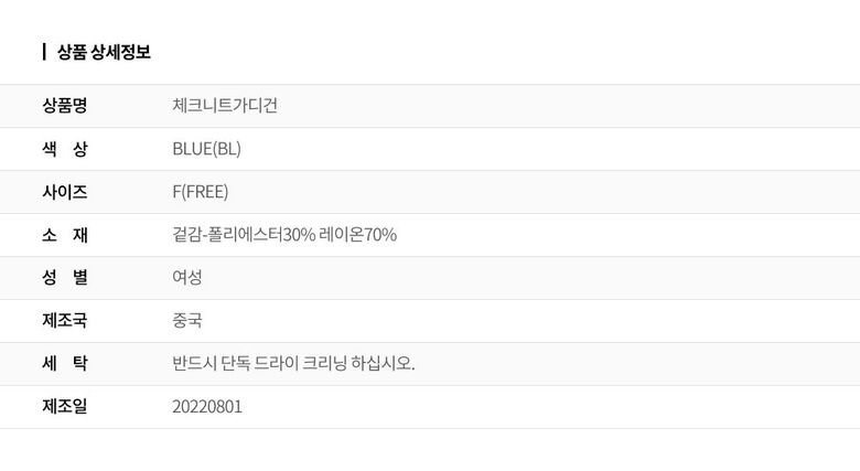 | 6. 세탁방법 및 취급시 주의사항 | 상세페이지 참조 |