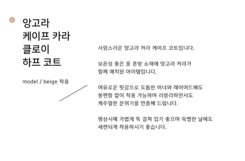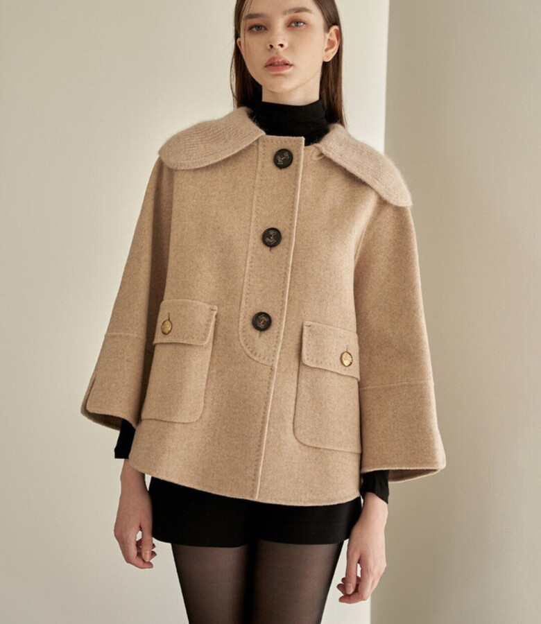 르니앤맥코이 앙고라 케이프 카라 클로이 핸메이드 하프 코트MK11HJ205